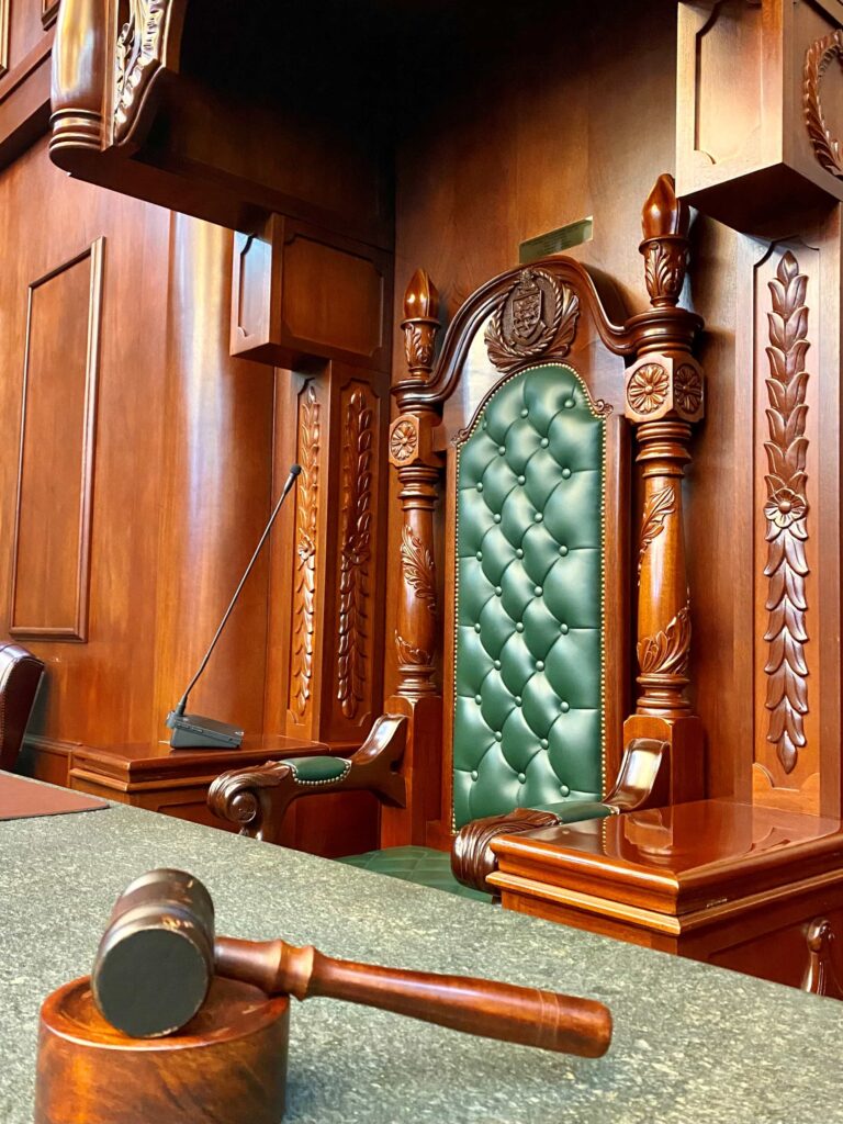 As one enters the main Chamber of the Parliament of the Cayman Islands, the Speaker’s elaborate chair on a dais at the opposite end to the main doors is the single most eye-catching feature.